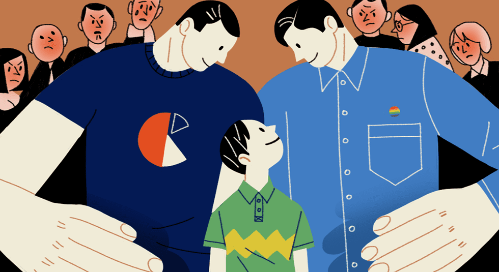 Я понял, что у меня необычная семья, когда мне было пять лет. Других детей из садика забирали не только папы, но и мамы. Естественно, это вызвало у меня много вопросов. Тогда родители максимально просто объяснили, почему наша семья отличается от других. Сказали, что иногда люди одного пола испытывают чувства друг к другу и хотят быть вместе. В обществе считается нормальным только союз мужчины и женщины, но если ты действительно любишь человека и дорожишь им — какая разница, какого он пола? Это не должно ограничивать и мешать возникновению семьи.