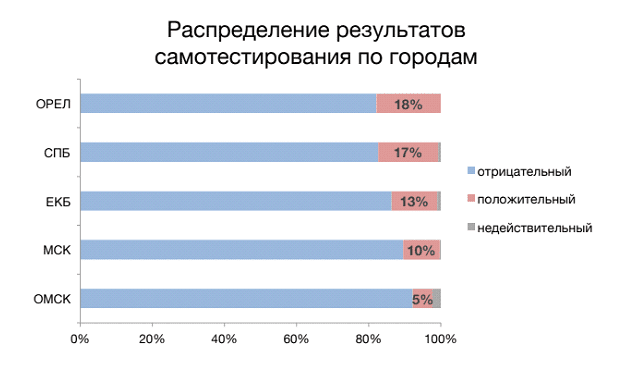По итогам 2017 года исследование «Открытого Института здоровья населения» при поддержке Роспотребнадзора показало, что в Петербурге 22,8% МСМ живут с ВИЧ. В Екатеринбурге этот показатель составил 16,5%, а в Москве 7,1%. Информация по другим мегаполисам отсутствовала.