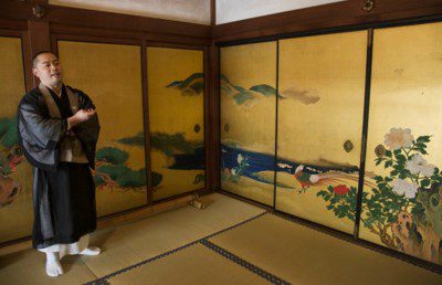 (на фото) Преп. Такафуми Каваками в Шункоине, подразделении храма Миошинджи. В начале 20-го века этот храм был одним из центров дзэн-буддизма в Японии.