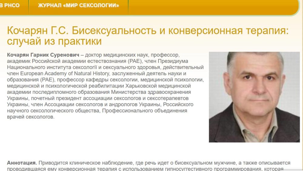 В одном из ведущих российских журналов «Мир сексологии» в №19 за 2020 год была опубликована статья об успешном «лечении» от бисексуальности, которую можно назвать одой конверсионной терапии.