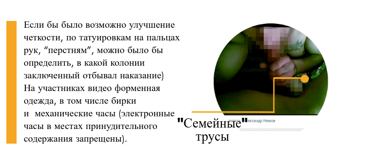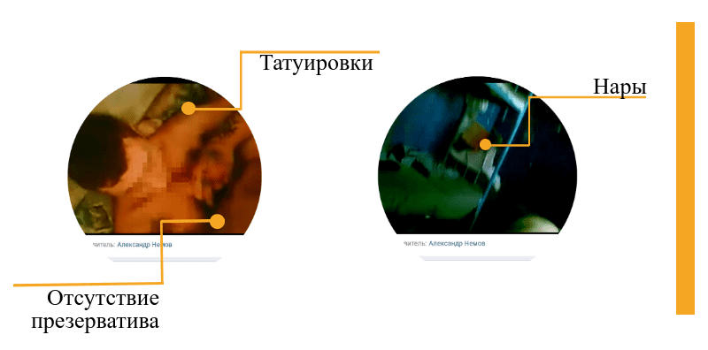 Достаточно посмотреть на названия роликов на скриншотах: «Рабочее очко», «Дырявый рот», «Кавказский петух», «Вафлёр», «Петух Федя обслуживает», «Е#@ петуха в душевой», «Рабочий петушок», «Долбит петуха», «Петушатня на складе», «Отымел петуха прямо на шконке». Это уже как бы и не человек, а либо принимающий орган «очко», «рот», либо нечто презренное: «петух», «вафлёр» и т.д., в лучшем случае «обслуживающий персонал». Понятно становится, почему ни на одном видел мы не видим, чтобы у человека спрашивали согласие на съемку и выкладывание откровенных материалов в Интернет.