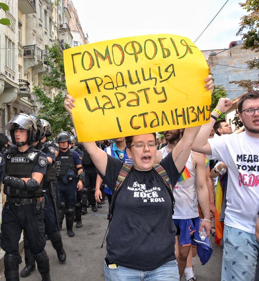 Глядя на людей, не только киевлян, но и собравшихся из Харькова и Мариуполя (самых разных регионов Украины), понимаешь, почему невозможно сорвать, запугать или разогнать этот марш. Мотивированных людей с чувством собственного достоинства — запугать невозможно. Это очень бросалось в глаза — по контрасту с Россией, где лозунги равных прав ЛГБТ и достоинства собирают несколько десятков человек.