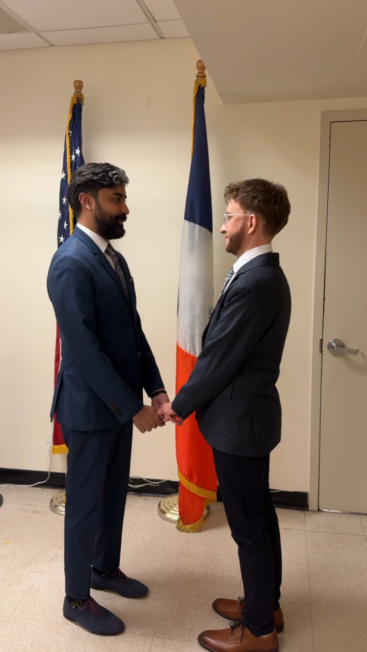 Начал пользоваться Grindr и встретил своего будущего мужа — Саяда. Мы жили по соседству, начали общаться, затем я познакомился с его мамой и остальной семьей. Через год мы решили пожениться. Это было обоюдное решение — без традиционного предложения: купили кольца накануне свадьбы и просто расписались.