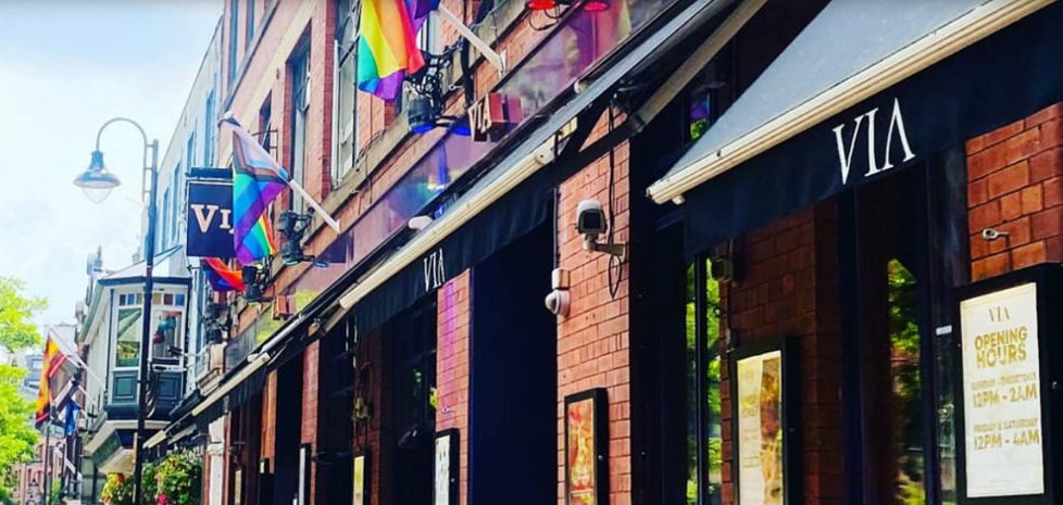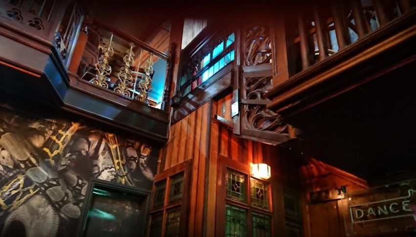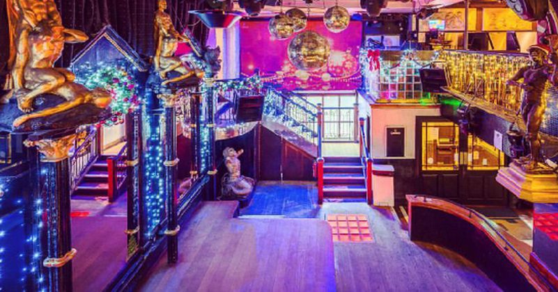 Бар выделяется походной курилкой. Ряд темных комнат из красного дерева, люстр, кожаных диванов, готических балконов и баров с неизменно роскошным английским стилем, радужными флагами и ди-джеями трансвеститами.