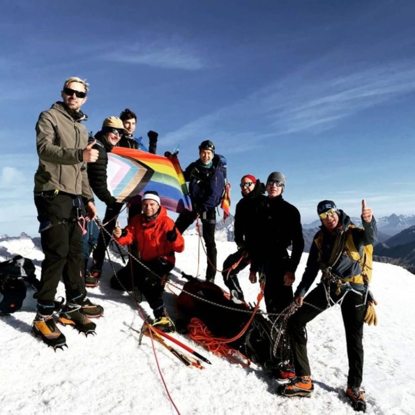 Международная группа ЛГБТ-альпинистов покорила Монблан (4 810 метров ) и швейцарскую гору Кастор (4 223), развернув на вершинах радужный флаг.