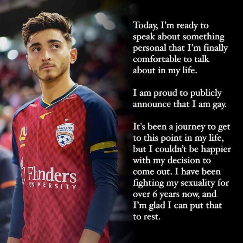 21-летний полузащитник «Аделаиды Юнайтед» Джош Кавалло сообщил в Твиттере: «С гордостью публично заявляю о том, что я гей».