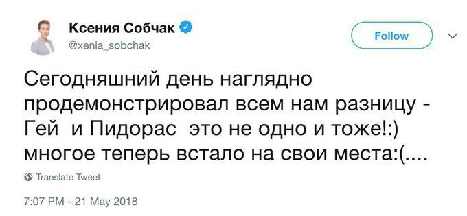 Спустя несколько часов Собчак публикацию в твиттере удалила.