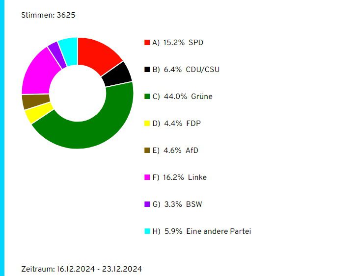 В опросе на немецком сайте Queer.de, проведенном в конце 2024 года, 4,6 % читателей заявили, что проголосуют за АдГ на федеральных выборах в феврале.