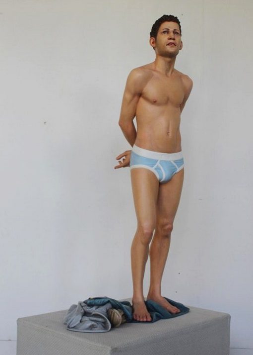 Серия цветных скульптур в стиле гиперреализма были вдохновлены испанской христианской иконографией мучеников семнадцатого века.
