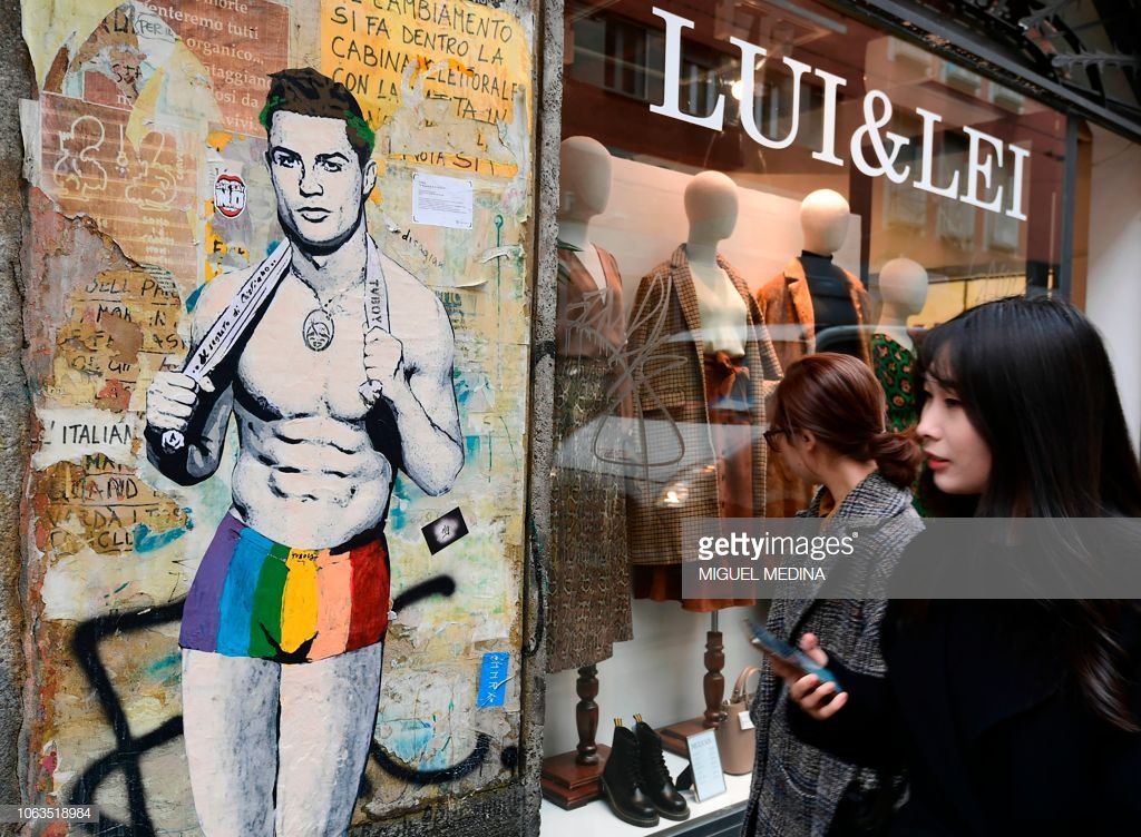 На одной из улиц итальянского Милана появилось граффити с изображением форварда «Ювентуса» Криштиану Роналду. Известный футболист изображен в одних трусах расцветки ЛГБТ-флага.