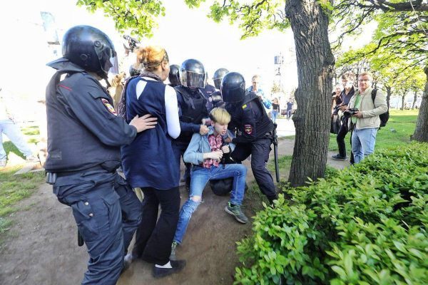 Мирная ЛГБТ-акция в Петербурге продлилась не более 10 минут — полицейские объявили о том, что она «проводится незаконно» и задержали шестерых человек, сообщает корреспондент «Парни ПЛЮС».