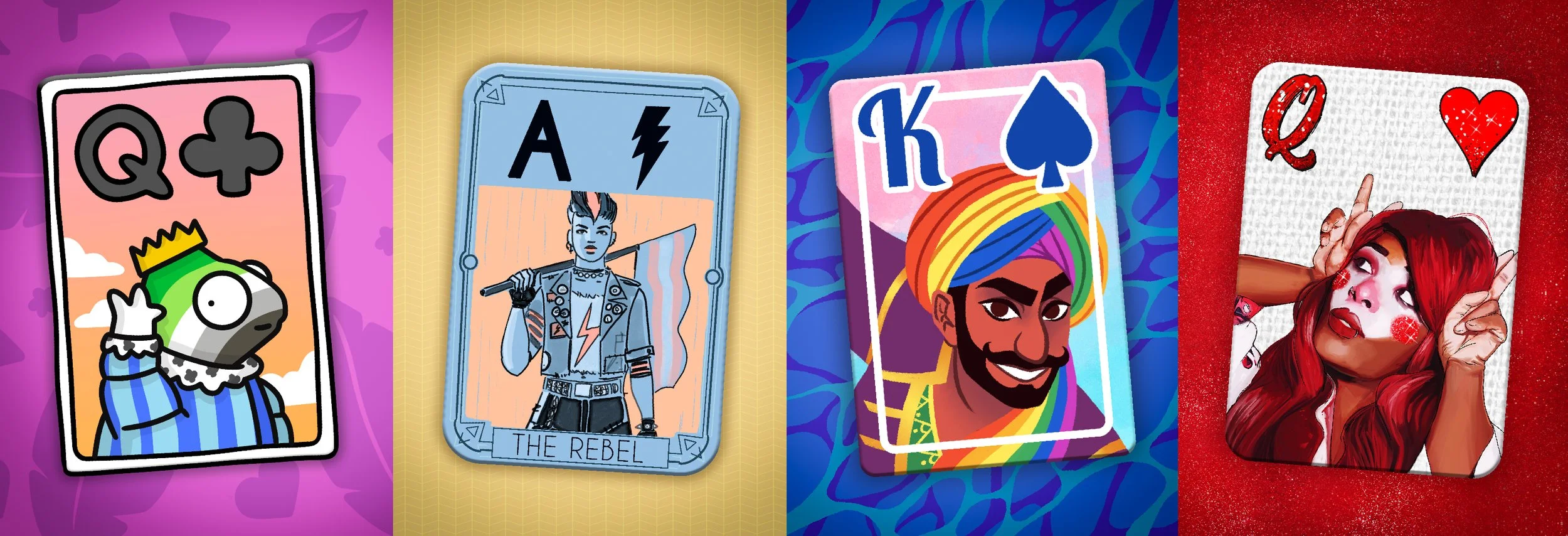 Flick Solitaire — это переосмысленный пасьянс с несколькими режимами игры. Особое внимание в игре уделено авторским колодам: их создали 63 художника, среди которых есть и открытые квир-авторы. Именно они сделали для игры выразительные ЛГБТК-колоды.