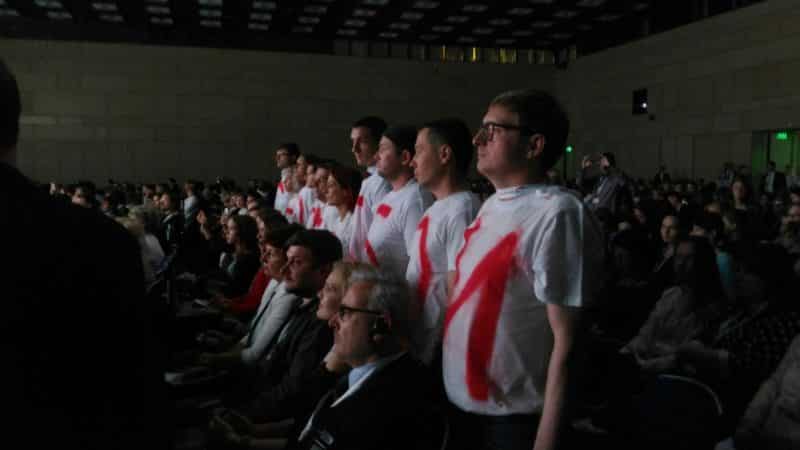 Акция началась во время выступлении зампреда правительства РФ Ольга Голодец. Люди, сидевшие в центральном ряду зала надели футболки и встали со своих мест. Таким образом, во время своего выступления Голодец могла прочесть обращение к ней и другим выступающим на открытии конференции.