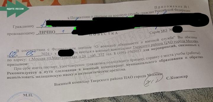 Эта повестка для «мероприятий, связанных с призывом». По такой повестке я бы вообще не ходил, даже если человек её подписал. Она выдана не тем военкоматом, не тем военным комиссаром — я бы такую повестку обжаловал. Кстати, обжаловать — это очень-очень важно, чтобы потом не обвинили в каких-то административных нарушениях или тем более в уголовных, в уклонении от армии. Нужно показать, что повестка была вручена незаконно, не по процедуре, и выразить свое активное несогласие с ней», — Артём Клыга.