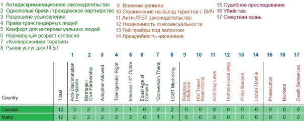Итак, список стран с 23 верхними позициями — и 22 нижними. А также 10 лучших и 15 худших стран для ЛГБТ-поездок.