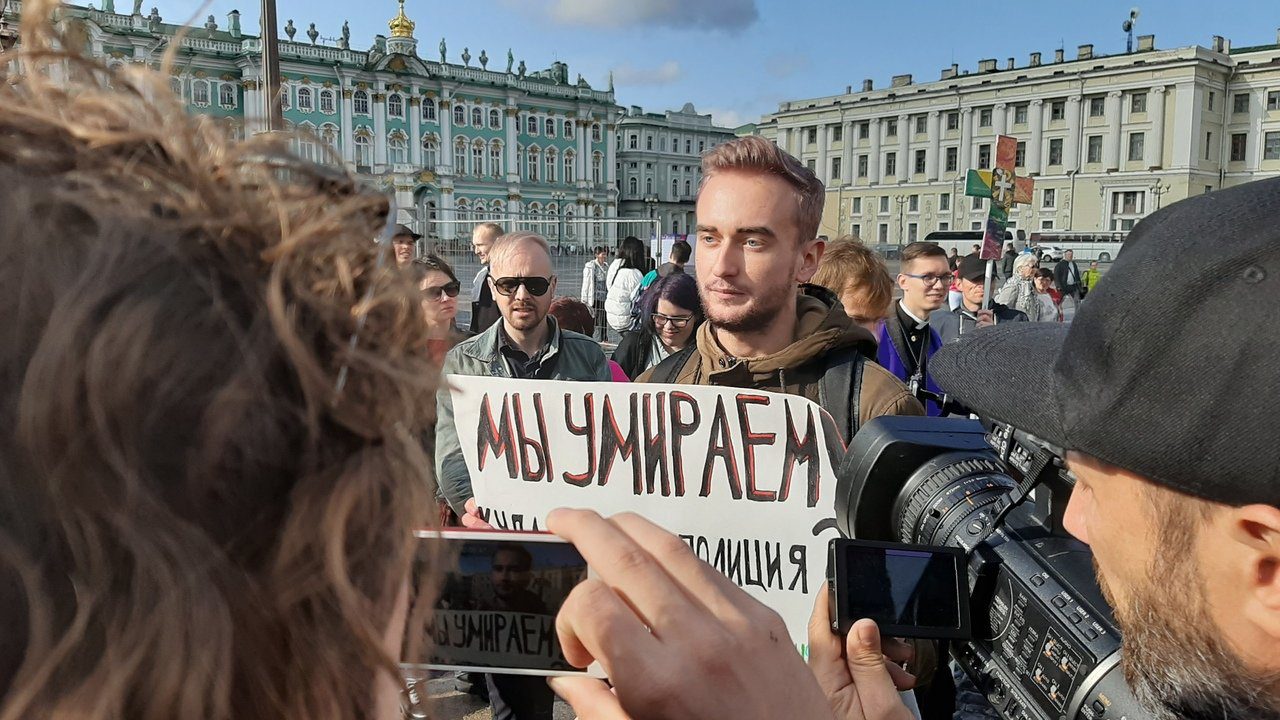 Я пережил отвратительное незаконное задержание на Дворцовой площади Петербурга, пытки в полицейском автобусе (распыление на задержанных газового баллончика, отсутствие воды и возможности в течении длительного времени попасть в туалет). Будучи задержанным в 17:40, в отдел полиции я попал в 21:10, где провёл более трёх часов.